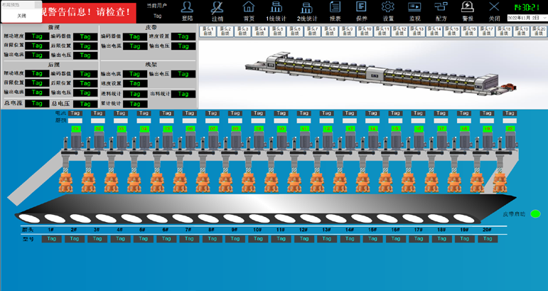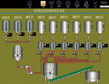 ●原料配送 技术特点:系统采用称重传感器、西门子触摸屏、西门子PLC、远程模块、模拟量模块、系统组态等控制整个系统的运行,模拟量控制电机的变速运行准确称重粉料的重量达到客户需求的范围之内,远程模块实现对系统的远程操作减少对整套系统的线体的布局,系统组态进行精确采集并在上位机显示、记录、统计,以及生成报表,能方便地查询历史数据及直观地显现设备的生产情况以及故障查询等。 |