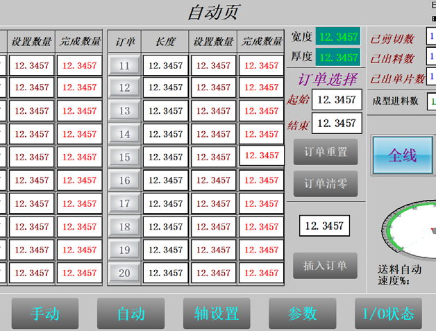 ●辊压成型生产线改造 本系统主要采用西门子硬件组成,主CPU采用西门1500系列,伺服采用V90,主要送料部分采用精确度更高,响应更快的S210伺服,变频则采用G120系列。全系统采用PROFINET通讯,响应速度快、更稳定,方便故障排查。操作也更加简便。 |